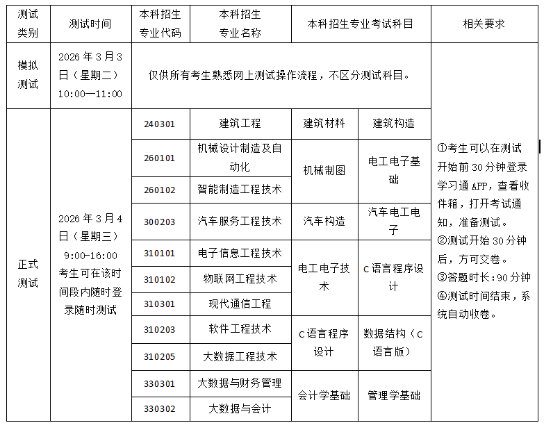 我校2026年普通高等教育专升本自荐生专业综合能力测试采取网上测试形式,为帮助考生顺利完成我校普通高等教育专升本自荐生专业综合能力网上测试工作,制定本指南,请广大考生务必认真阅读。