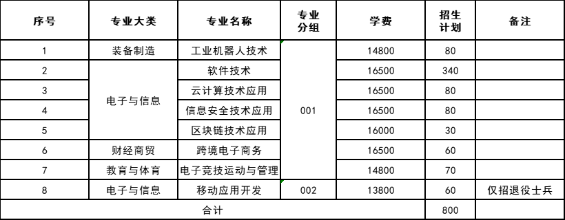严格按照教育部、省教育厅等部门要求,全面实施阳光招生,根据招生计划及考生总成绩排名,按“专业志愿优先”原则录取。如遇考生总成绩相同时,依次看职业技能测试(总分)、职业技能测试(信息技术应用)、数学、语文单科成绩。