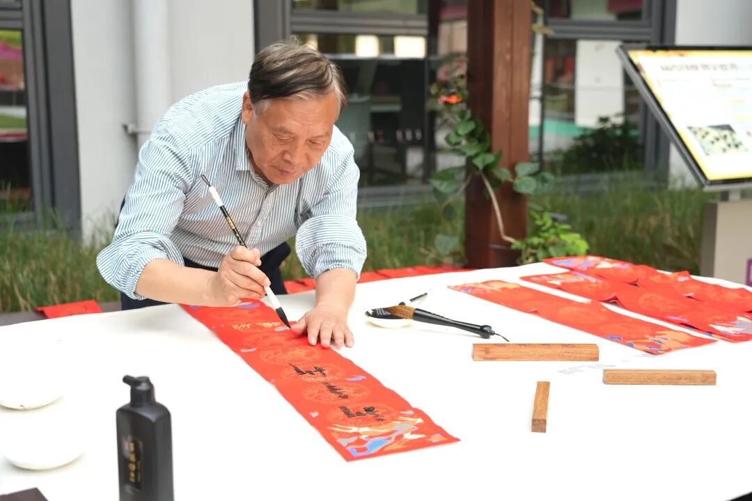 与师生一起挥毫泼墨