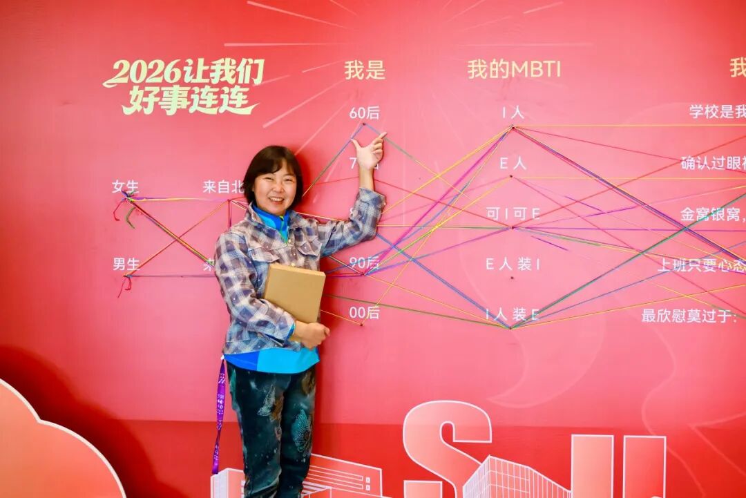同学们灿烂的笑容与红火的底色相映
