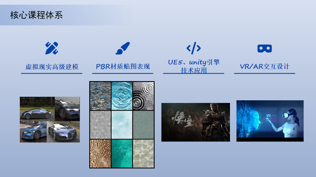 本专业立足“文化+科技”双轨培养,聚焦社会主义核心价值观培育,培养德、智、体、美、劳全面发展的高素质复合型技术技能人才。核心目标是让学生掌握三维建模与动画、界面交互设计、虚拟引擎应用、软硬件系统搭建等核心技能,具备PBR材质贴图与渲染、虚拟场景构建、交互功能开发等实战能力。