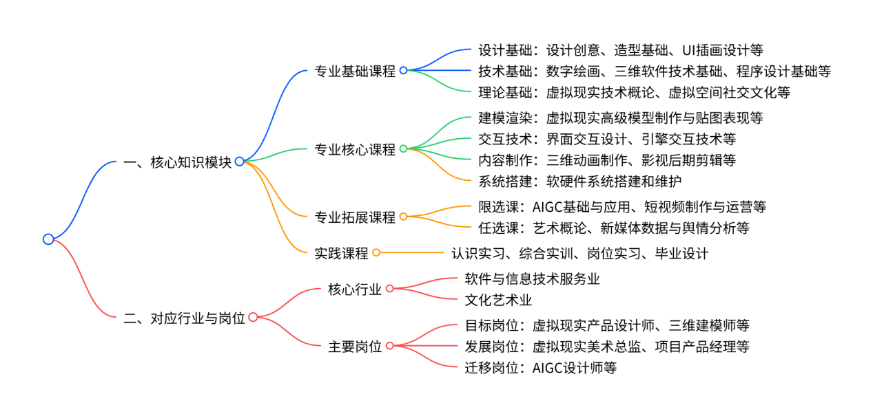 1. 目标岗位:虚拟现实产品设计师(负责需求调研与方案撰写)、三维建模师(PBR建模与材质制作)、虚拟现实场景设计师(场景搭建与渲染)、虚拟现实界面设计师(交互设计与界面搭建)。