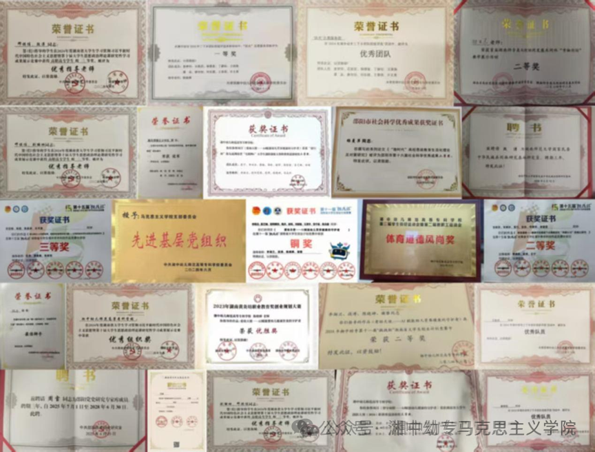 集体荣誉:2024年7月学院党支部被学校授予“先进基层党组织”,2025年7月被邵阳市教育局授予“先进基层党组织”;“扶光”志愿服务团获评2024年全国大学生“乡村振兴·青春笃行”计划湖南省级示范队,彰显学院整体建设水平与社会影响力。