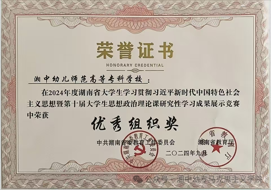 学生竞赛:近三年,指导学生在湖南省大学生思想政治理论课研究性学习成果竞赛中获二等奖4项、三等奖6项;2024年学校获评湖南省大学生研究性学习竞赛“优秀组织奖”;师生在党的创新理论宣讲比赛中10人次获校级三等奖以上荣誉。