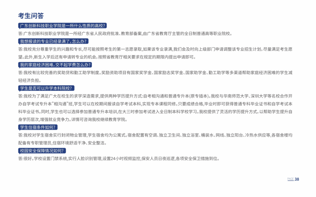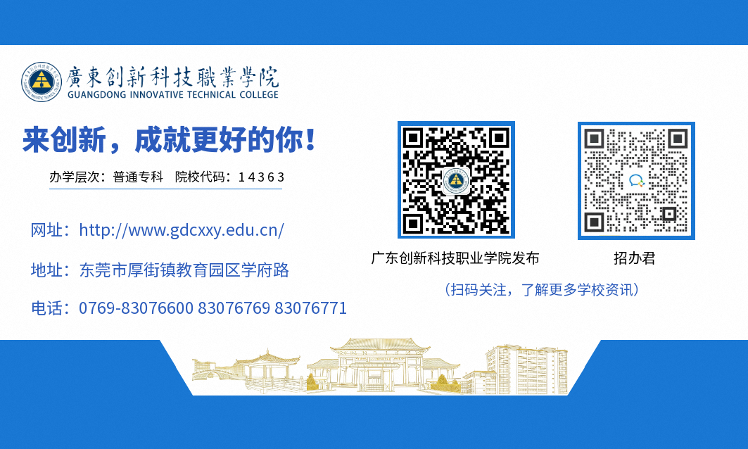 一、走进创新广东创新科技职业学院成立于2011年,是一所经广东省人民政府批准、教育部备案,由广东省教育厅主管的全日制普通高等职业院校。学校下设信息工程学院、智能制造学院、建筑与设计学院、医药健康学院、经济管理学院、人文教育学院、马克思主义学院7个二级学院,现有高职全日制在校生21000余人。2014年跻身万人学府,2018年通过教育部组织的高职院校人才培养工作评估。建校以来,毕业生就业率保持在98%以上,为社会输送近4万名高素质技术技能人才。