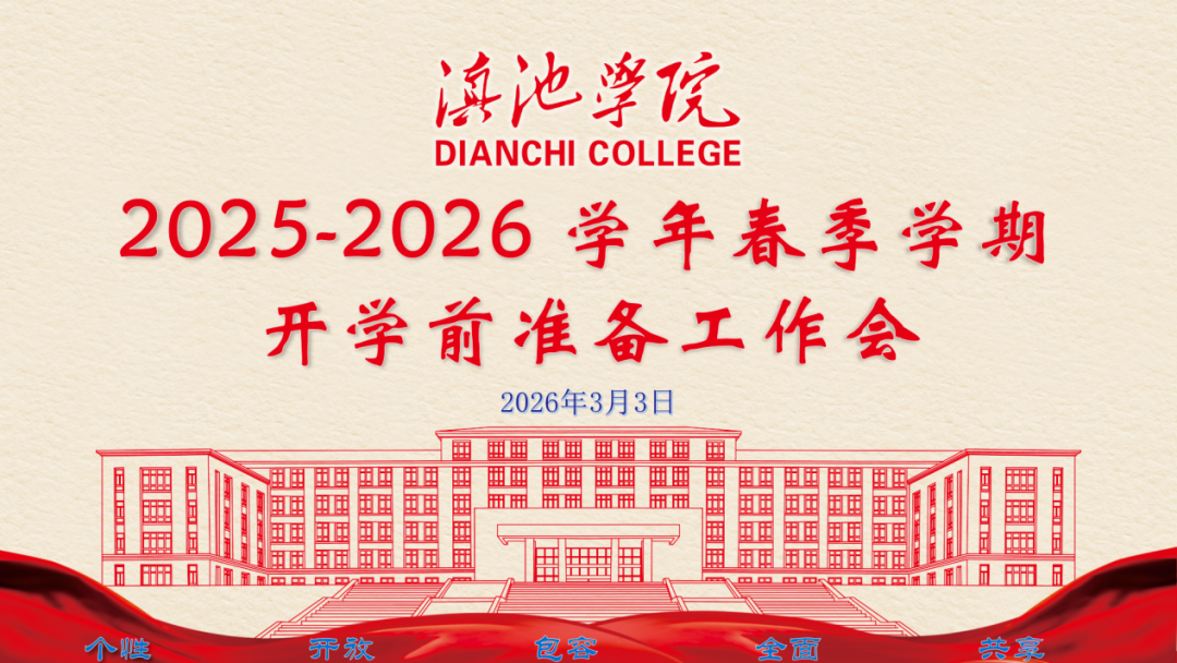 2026年3月3日,滇池学院召开2025-2026学年春季学期开学前准备工作会,及时传达学习、贯彻落实2026年全省春季开学暨学校安全工作视频会议精神,安排部署春季学期开学前准备及校园安全稳定等工作。