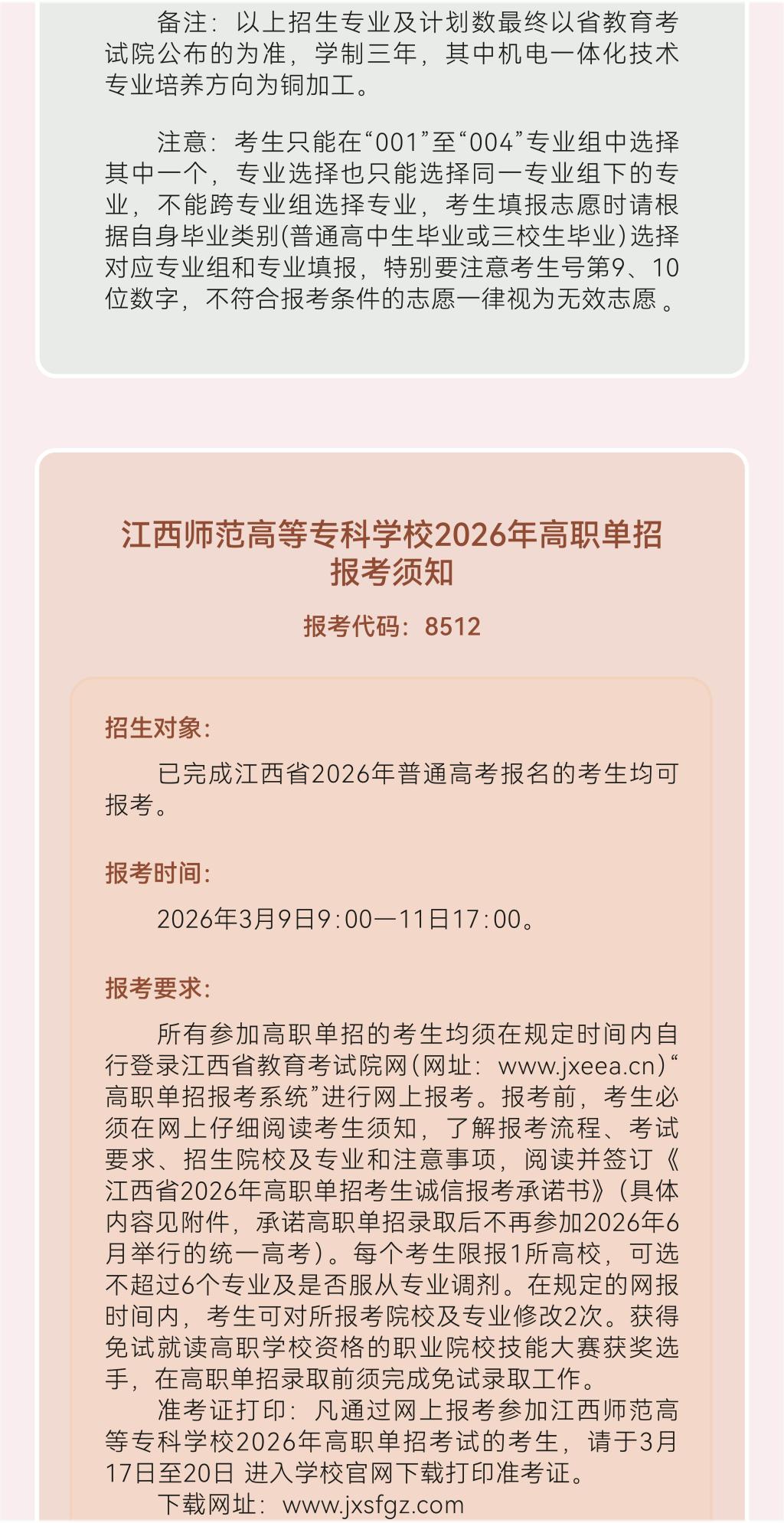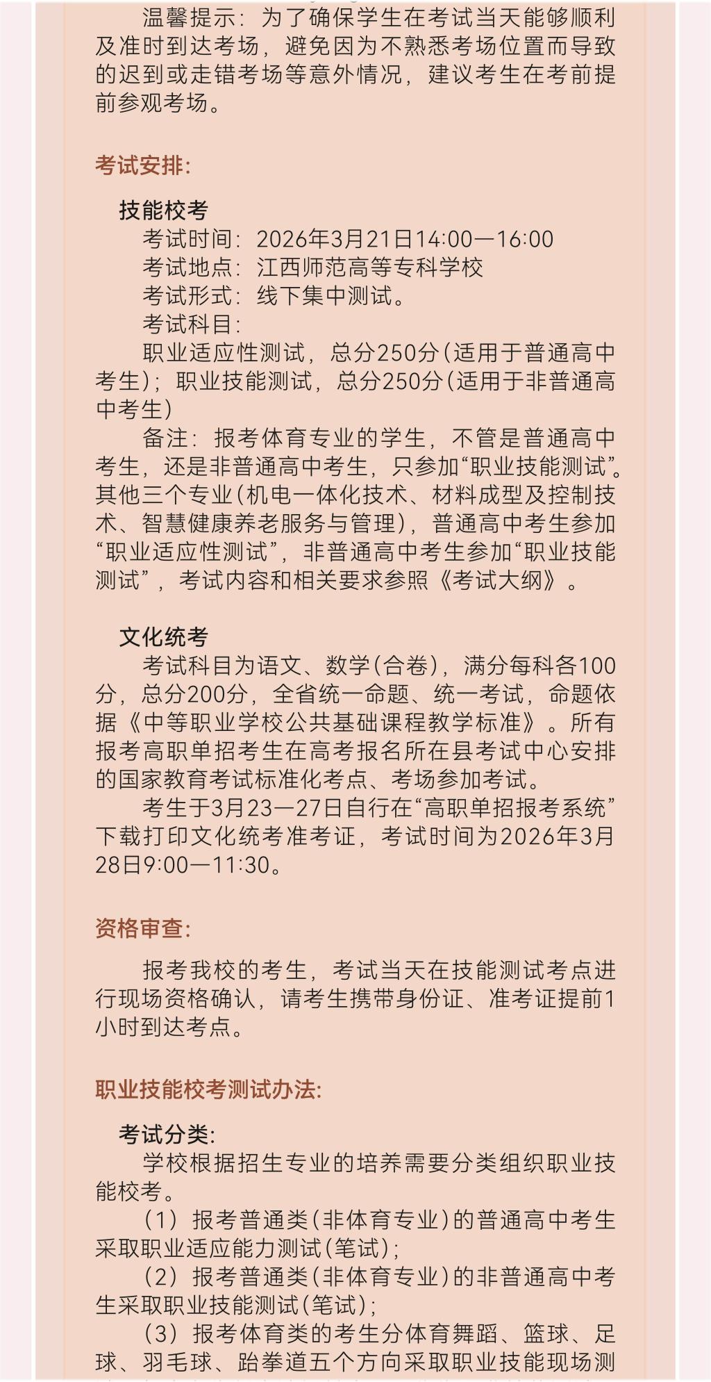 江西师范高等专科学校2026年单招简章
