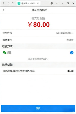 (一)缴费时间:2026年3月8日8:00—3月10日8:00
