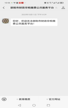 第一步:关注邵阳市财政非税缴费公共服务平台公众号。