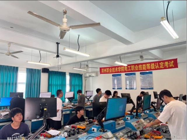 实验室与设备专业依托闽台数字工业产业学院,建有多个核心实训室,总面积超500㎡,设备覆盖电气自动化全技术链,兼具教学、竞赛培训功能。智能电气控制实训室(180㎡,56工位)精准对接《可编程控制器应用技术》课程,设计15项工业级实训模块,涵盖PLC组态、变频器控制及运料小车系统等核心技能,同时引入企业级设备,强化智能制造场景应用能力,支撑工业网络智能控制与维护等竞赛培训;电工维修技能实训室(180㎡,60工位),设电气控制实训台,对接电工(三级)考证实训与电机控制教学,可开展电力传动控制系统培训;电工电子实训室(130㎡,60工位),含电子电路实验台,供电路与电工技术课程实验;单片机技术实训室(130㎡,60工位),有EDA技术实训装置,支持单片机应用教学与电子设计竞赛备赛,全方位提升学生实践与竞赛能力。