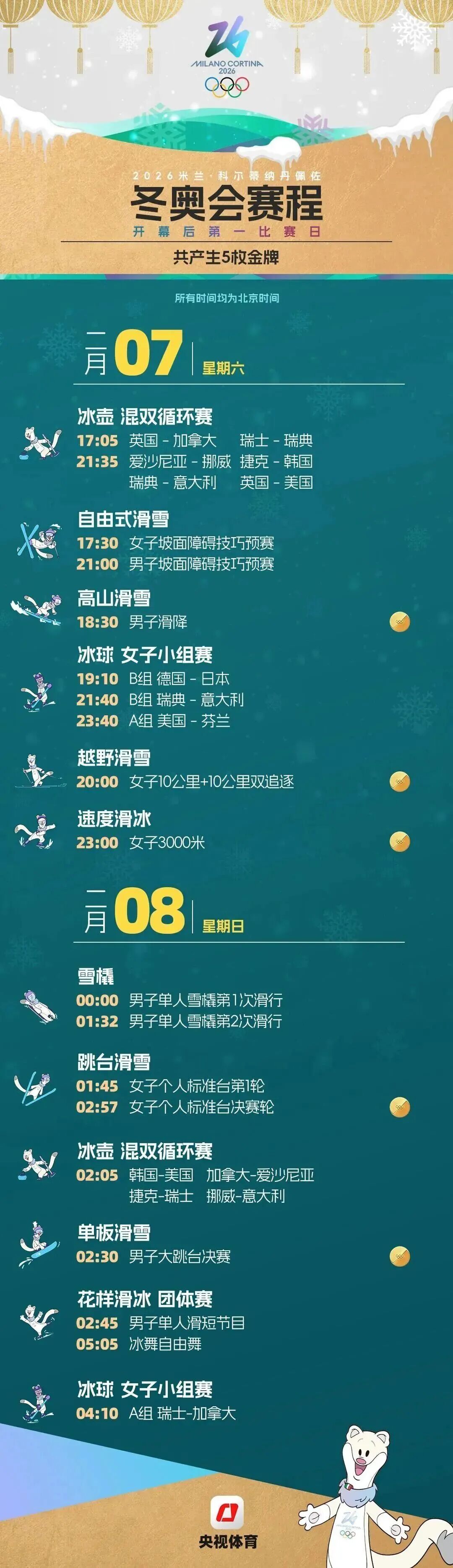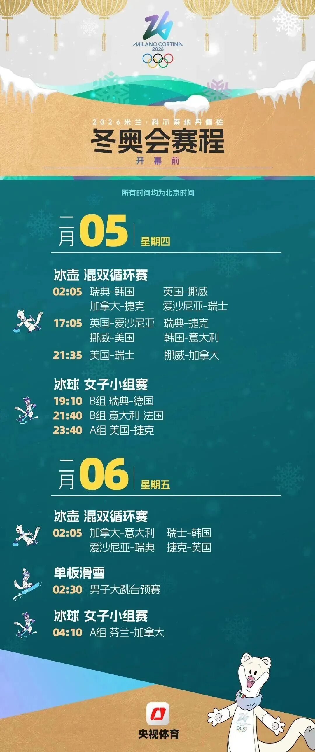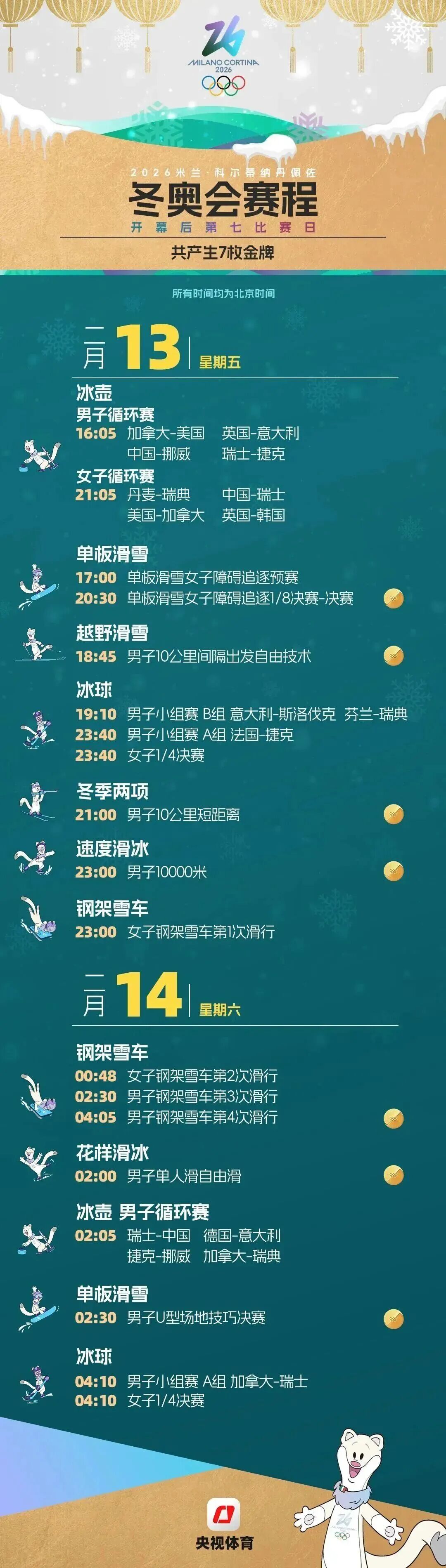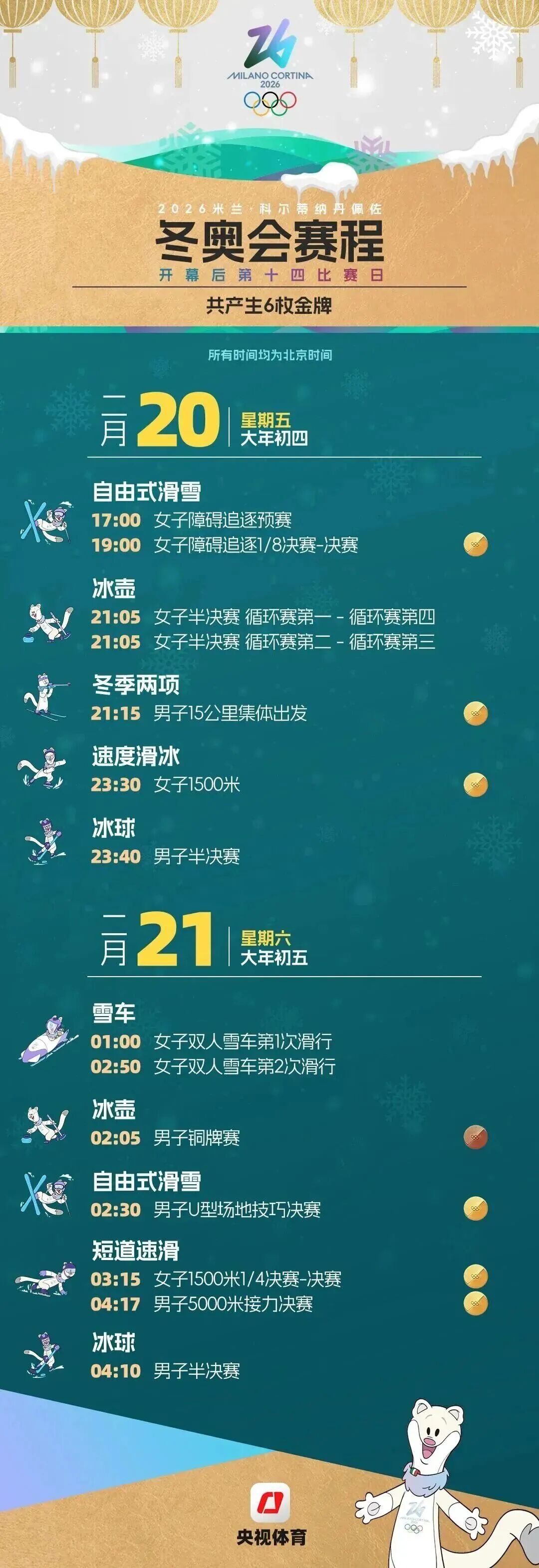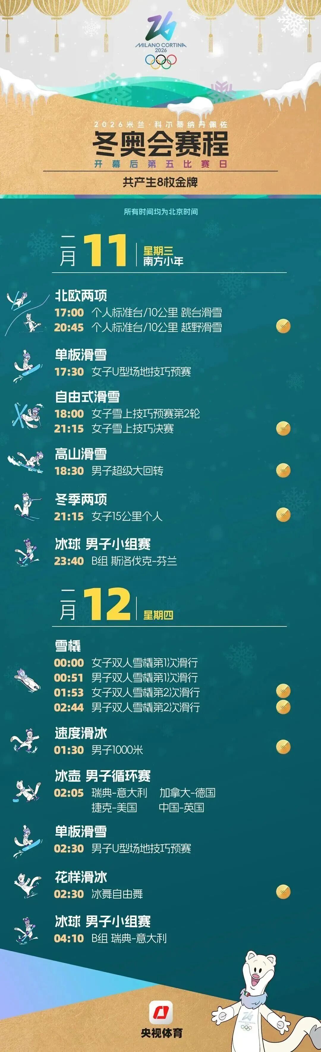 米兰冬奥会赛程图