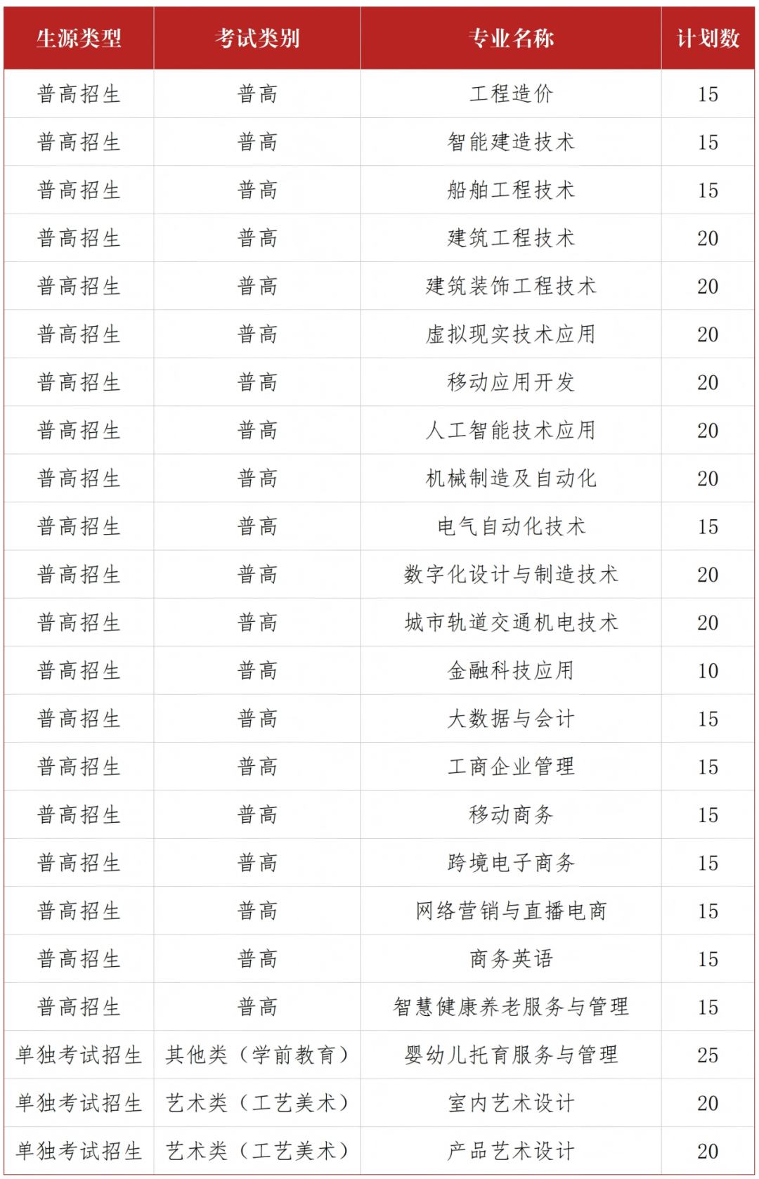 第八条 嘉兴南洋职业技术学院2026年高职提前招生计划共计400人,其中面向普高招生考生335人,面向单独考试招生考生65人。具体招生专业及计划数如下: