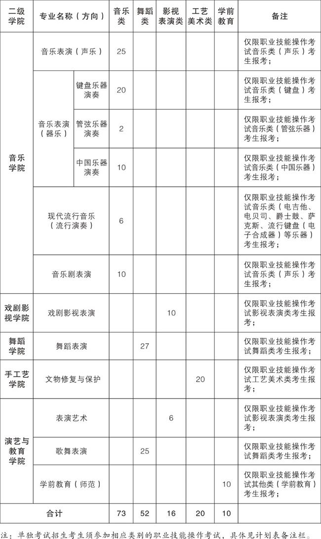 1.音乐类、舞蹈类、影视表演类专业综合成绩=职业技能操作考试成绩/3×0.7+文化考试成绩/3×0.3(歌舞表演、音乐剧表演除外);