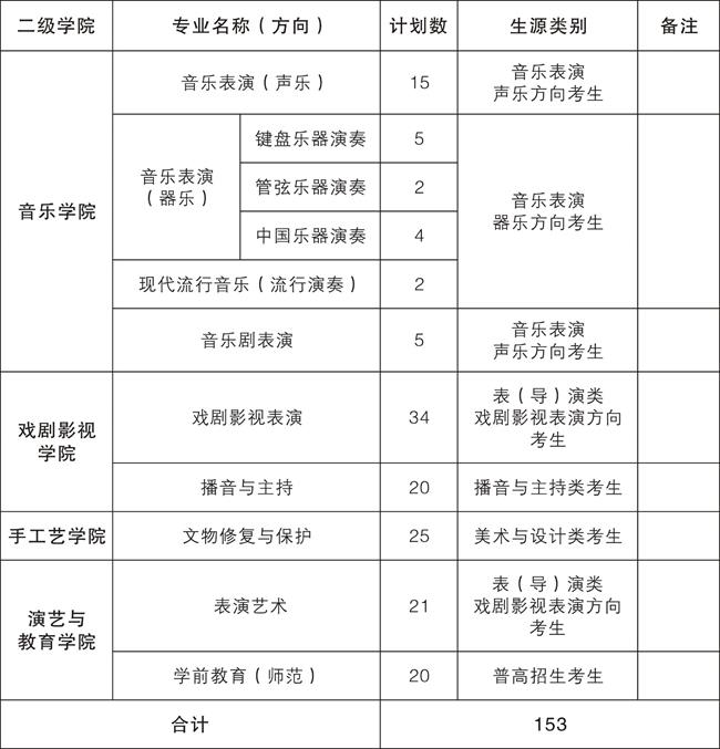 (一)面向普高招生考生153名
