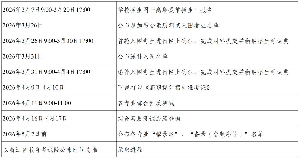 附:杭州科技职业技术学院2026年高职提前招生实施进程安排