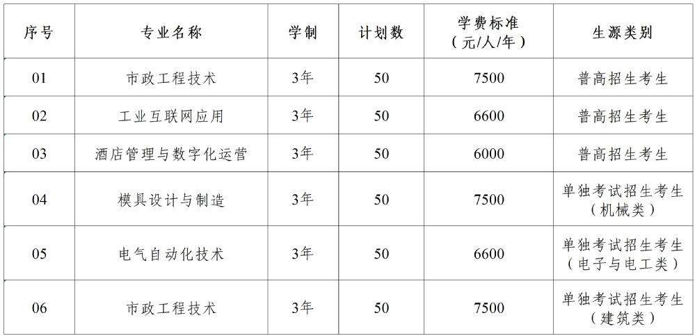 4.单独考试招生考生总分相同时,依次按综合测试成绩、职业技能考试成绩换算分、综合测试单科成绩进行排序录取。综合测试单科顺序排列:专业认知及相关知识、数学、英语。
