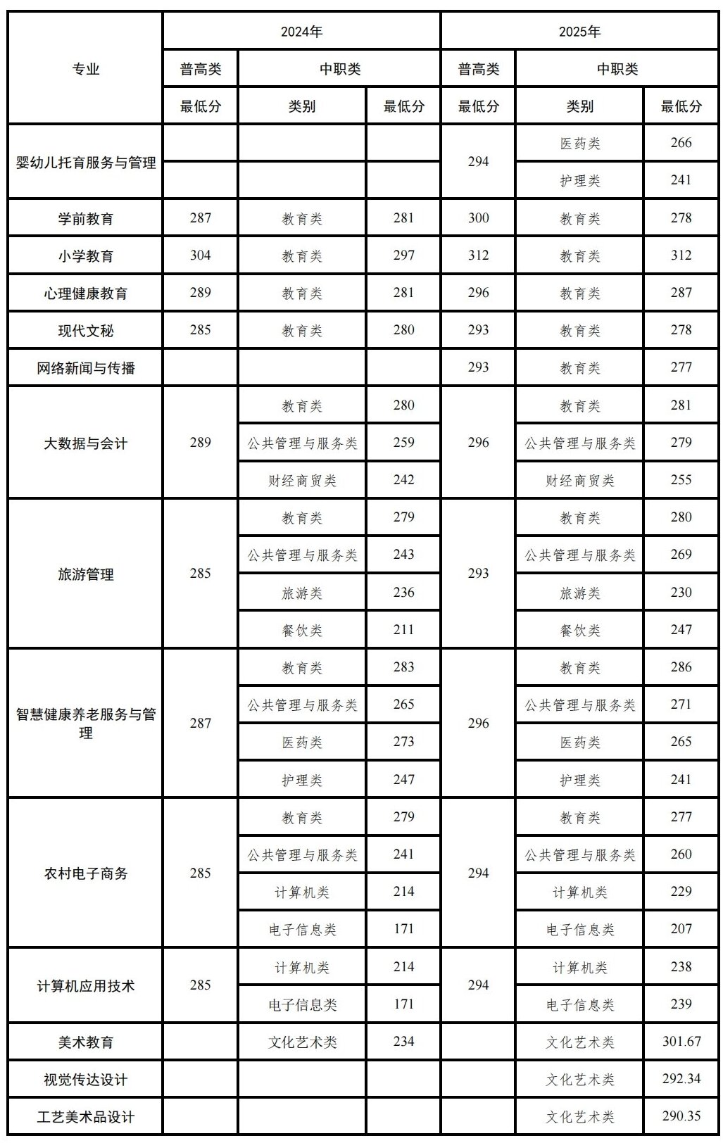 西昌民族幼专2024年-2025年高职单招各专业录取分数线