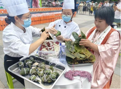 端午节我院师生指导市民包粽子,给环卫工人送爱心粽