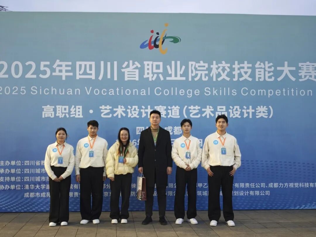 2025年四川省职业院校技能大赛艺术设计赛道艺术相关服务类,书画艺术专业学生邵垚吉、陈梦祯、袁雪婷、杨群峰(指导教师:李楠、梁振键)荣获二等奖。
