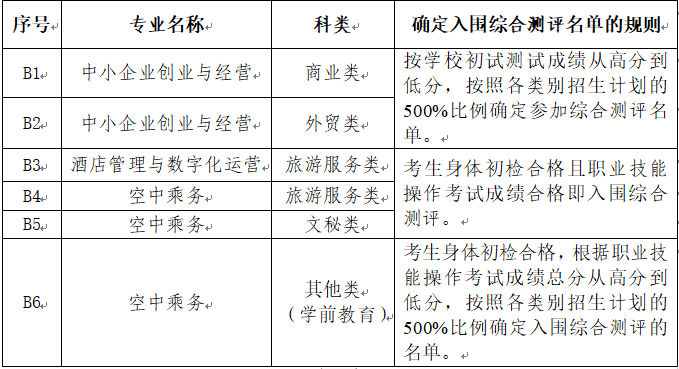 B4 | 空中乘务 | 15 | 6600 | 旅游服务类 |