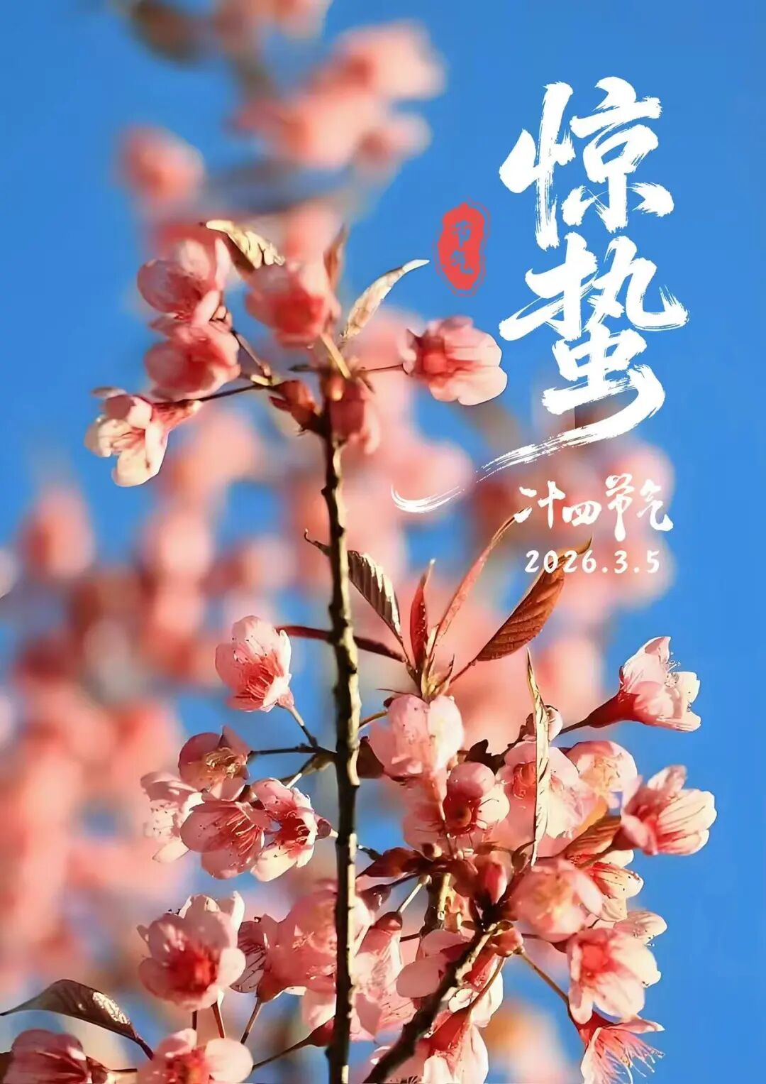 今天是2026年3月5日,惊蛰。惊蛰是二十四节气中的第三个节气,此时春雷始鸣,气温回升,昆虫萌动,“九九”已尽,“九尽桃花开,春耕不能歇”,标志着仲春时节的开始。