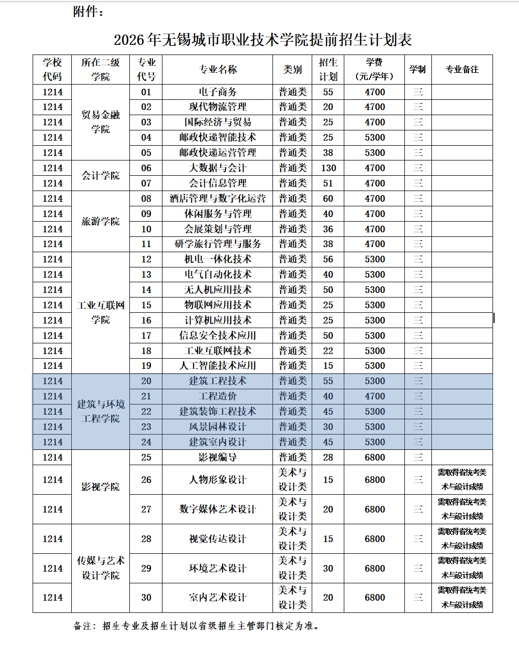 学院设建筑工程、建筑设计、工程管理、交通与市政工程四个教学系,开设建筑工程技术、工程造价、道路与桥梁工程技术、建筑装饰工程技术、建筑室内设计、风景园林设计6个专业。现有国家级职业教育在线精品课程1门、省级职业教育在线精品课程1门、省级课程资源8门,国家级重点专业1个、建筑工程技术专业群被遴选为省级高水平专业群,拥有省级新型建筑工业化创新基地1个、省级装配式建筑职业技能培训考核基地1个,建筑工程技术专业被认定为教育部高等职业教育创新发展行动计划(2015-2018年)骨干专业。