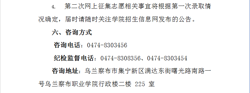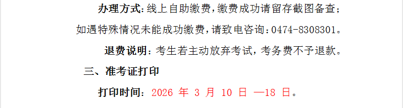 乌兰察布职业学院 2026 年单独招生缴费及准考证打印的通知