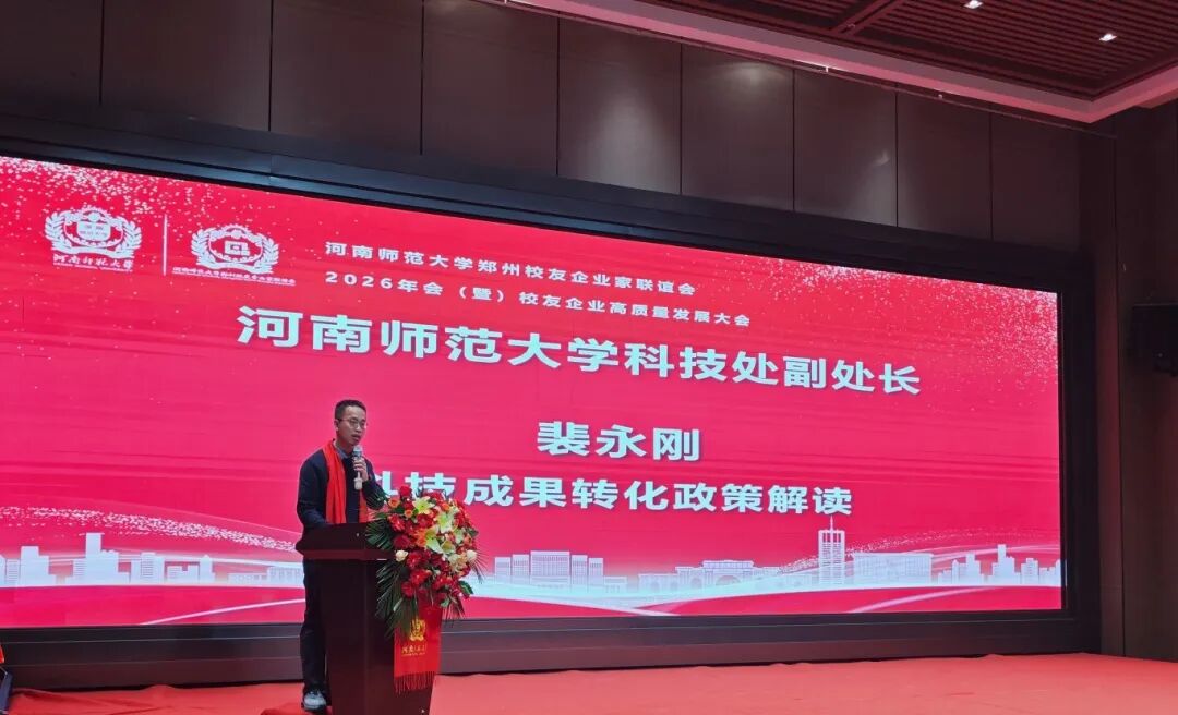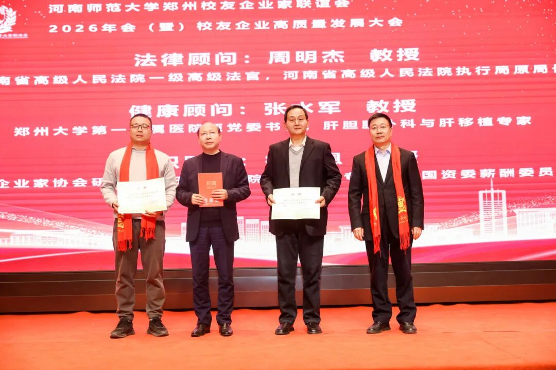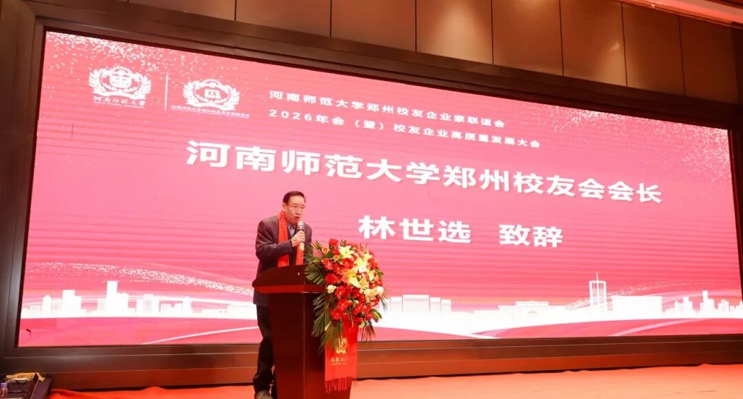 冯淑霞对郑州校友企业家联谊会的工作表示肯定,向长期以来关心支持母校建设与发展的校友企业家们致以新春的问候和衷心的感谢,并介绍了过去一年学校在学科建设、科研创新、人才培养、师资队伍、办学资源、社会服务等方面取得的优异成绩。她指出,师大积极发挥学科与人才优势,为企业提供人才培训、政策咨询等社会服务,深度融入并助力河南产业高质量发展。未来,学校将搭建学术资源共享平台、完善校企合作对接平台、升级校友互助交流平台,与郑州校友企业家携手深化合作,共同推进校地产业协同发展,为区域创新与产业升级注入持久动力。希望郑州校友企业家联谊会始终秉持“服务校友、服务母校、服务社会”的宗旨,当好情感联络员、资源连接器和母校代言人,以实干笃行推进母校“双一流”创建,以担当作为助力郑州高质量发展,为奋力谱写中原大地推进中国式现代化新篇章做出新的更大贡献。