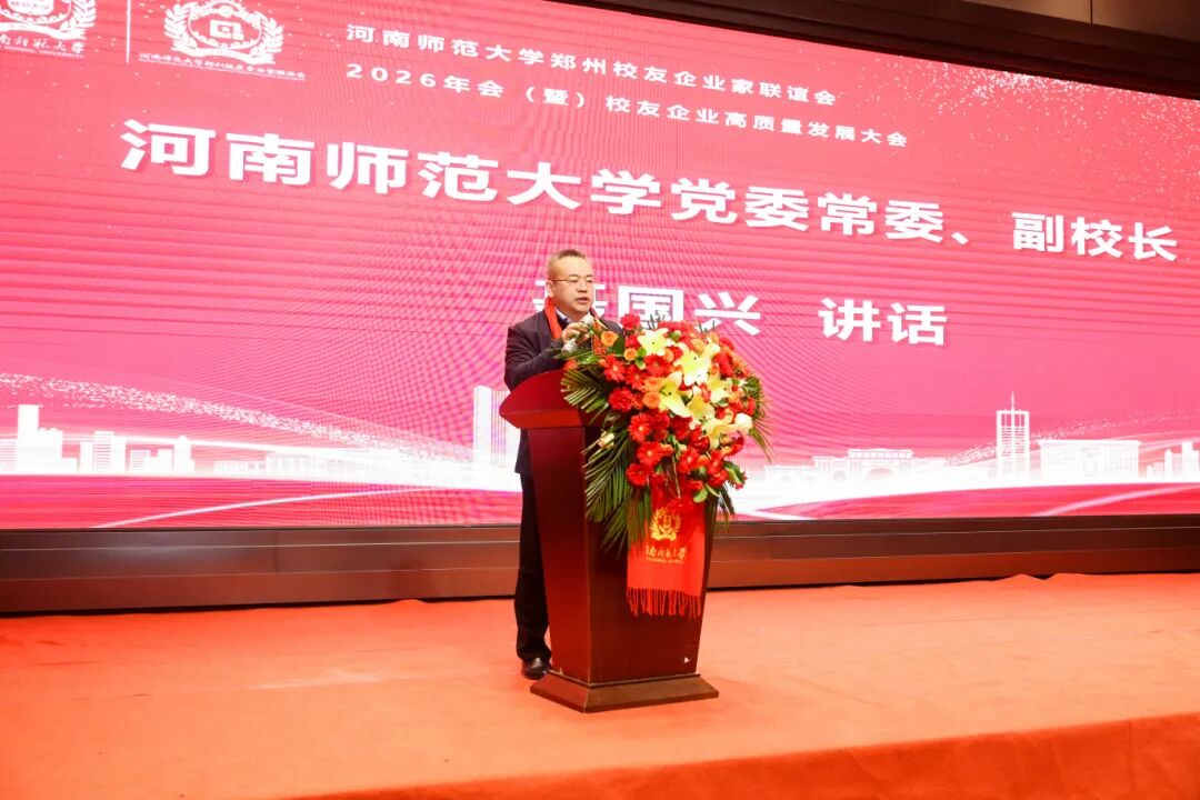 聂国兴在致辞中勉励校友企业家们立足中原、深耕实业,以师大人的厚德博学与大爱担当书写创业华章,为郑州发展添砖加瓦,为母校事业增光添彩,为民族复兴建功立业。