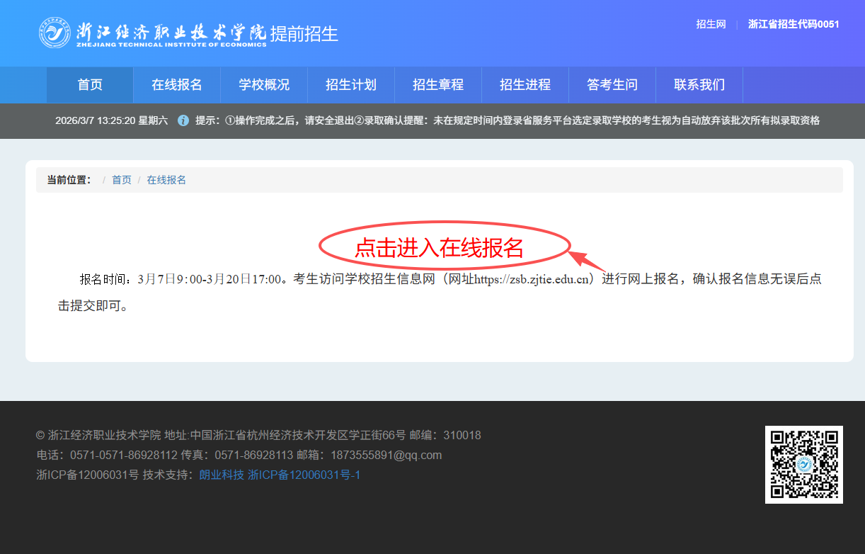 1.登录学校招生信息网,招生信息网网址:https://zsb.zjtie.edu.cn/,点击提前招生报名入口。