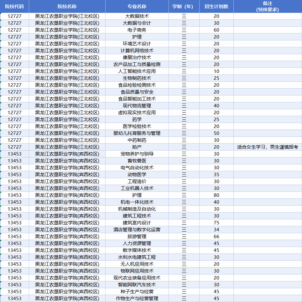 黑龙江农垦职业学院2026年单独招生计划