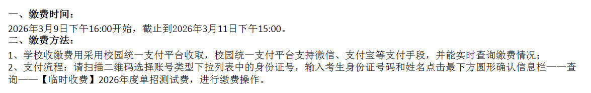 2026年单独招生测试费缴费时间及方法