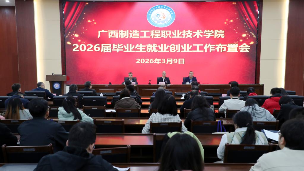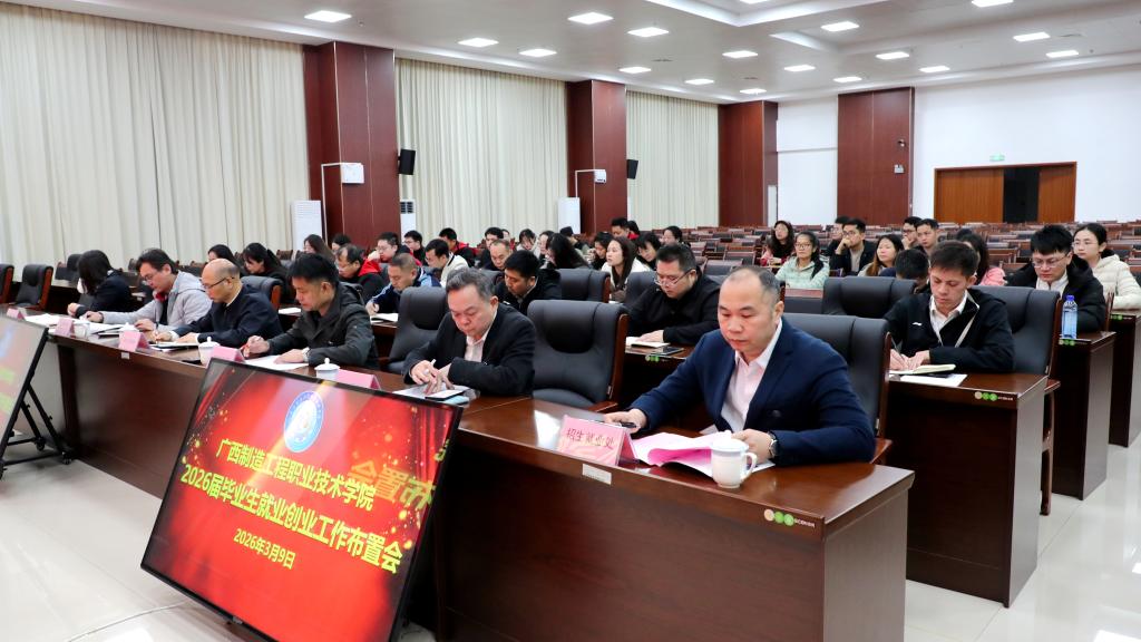 为精准研判就业形势,系统部署2026届毕业生就业创业重点工作,进一步统一思想、凝聚共识、压实责任,全力推动毕业生更高质量、更充分就业,3月9日上午,学校召开2026届毕业生就业创业工作布置会,学校党委副书记、校长吴炳科出席会议并讲话,党委委员、副校长赵骏新参加会议,会议由党委委员、副校长邓喜和主持,招生就业处、各二级学院负责人及分管就业工作负责人、就业专干、全体2026届毕业班辅导员参加会议。