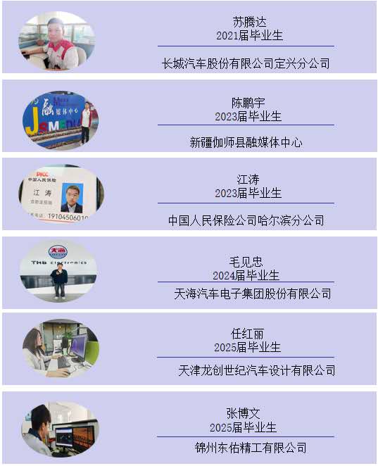 凭借全链条培养优势,专业毕业生实现“就业领域全覆盖、岗位选择多元化”,近三年就业率均保持在90%以上,平均起薪较单一技能专业高出10%。从研发设计到生产制造,从市场销售到金融服务,都有辽理工汽车服务工程学子的身影。