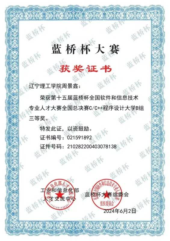 在“蓝桥杯” 全国软件和信息技术专业人才大赛中,专业学子连续三年有多人入围国赛,在 C/C++ 程序设计、Java 开发等赛道中表现突出,荣获国家级三等奖多项。