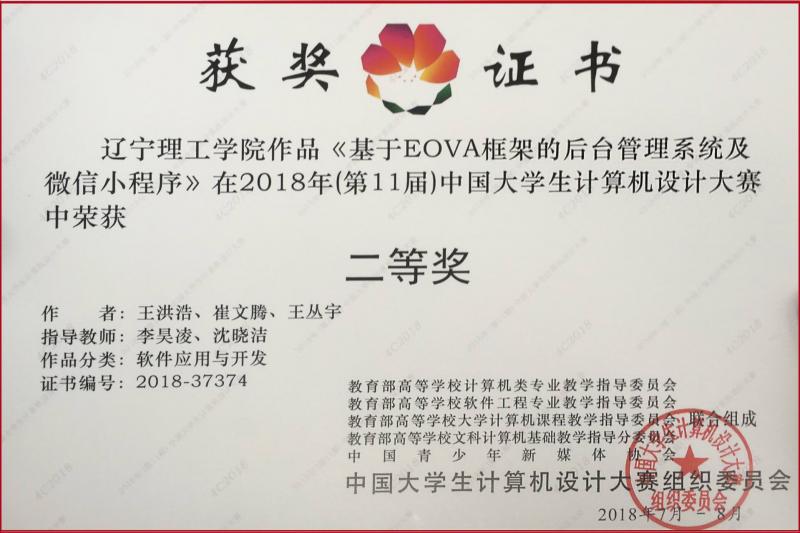 在中国大学生计算机设计大赛中,学生团队开发的利用 EOVA框架实现的后台管理系统,结合微信小程序搭建用户交互界面,最终荣获国家级二等奖;每年都有多支学生团队脱颖而出。