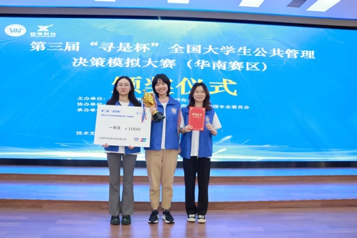 ▲第三届“寻是杯”全国大学生公共管理决策对抗大赛省级一等奖获奖照片