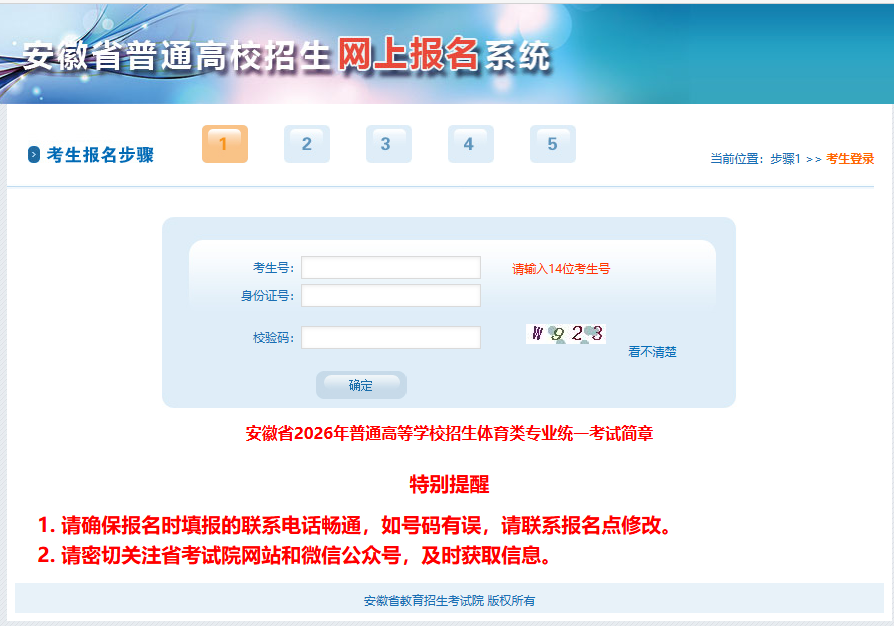 2.请确保高考报名时填报的“联系电话”号码正确并保持畅通,本次体育类统一考试报名时须使用该手机号接收验证码。如号码有误,请联系报名点修改。