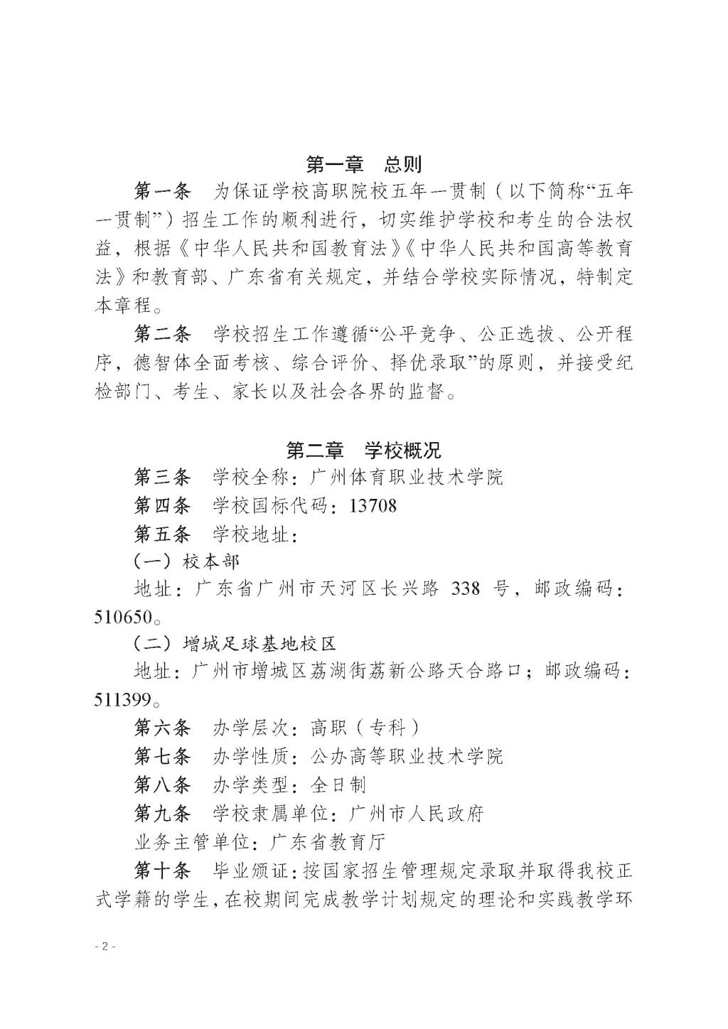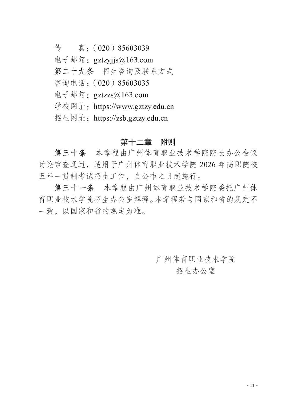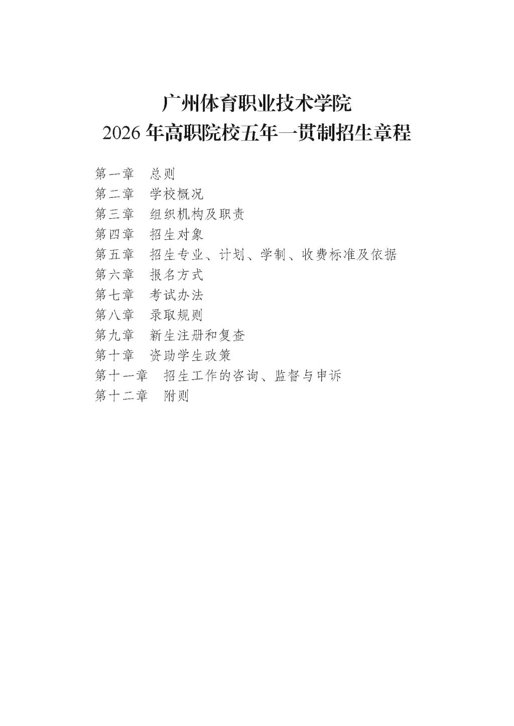 广州体育职业技术学院2026年高职院校五年一贯制招生章程