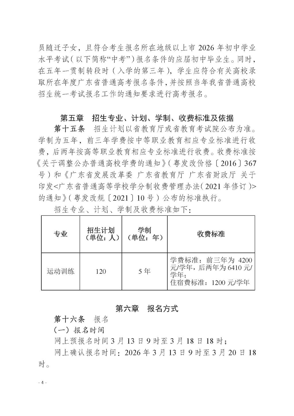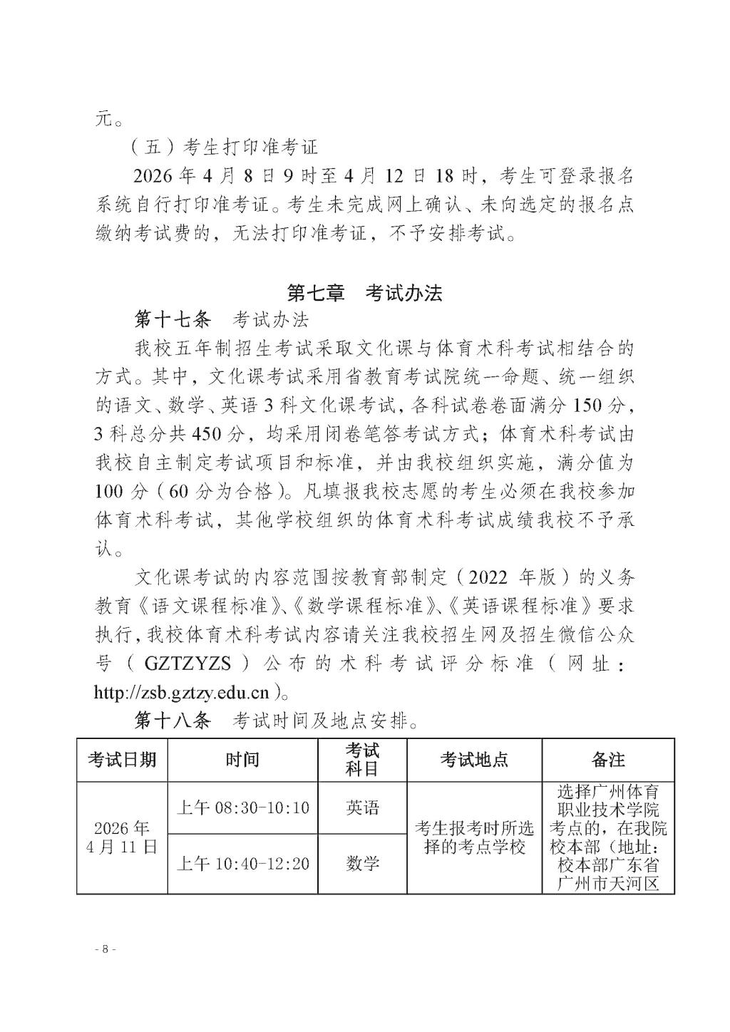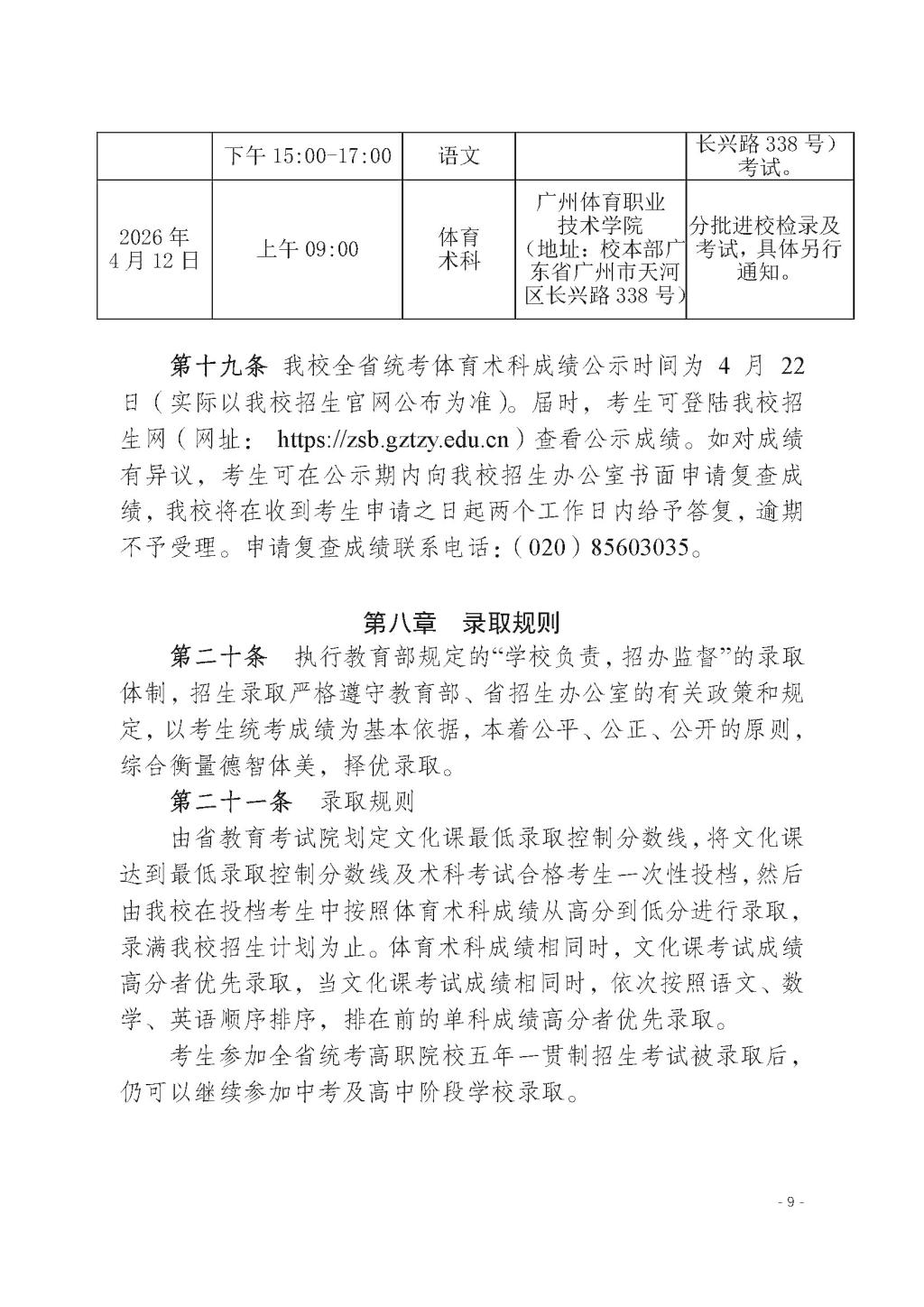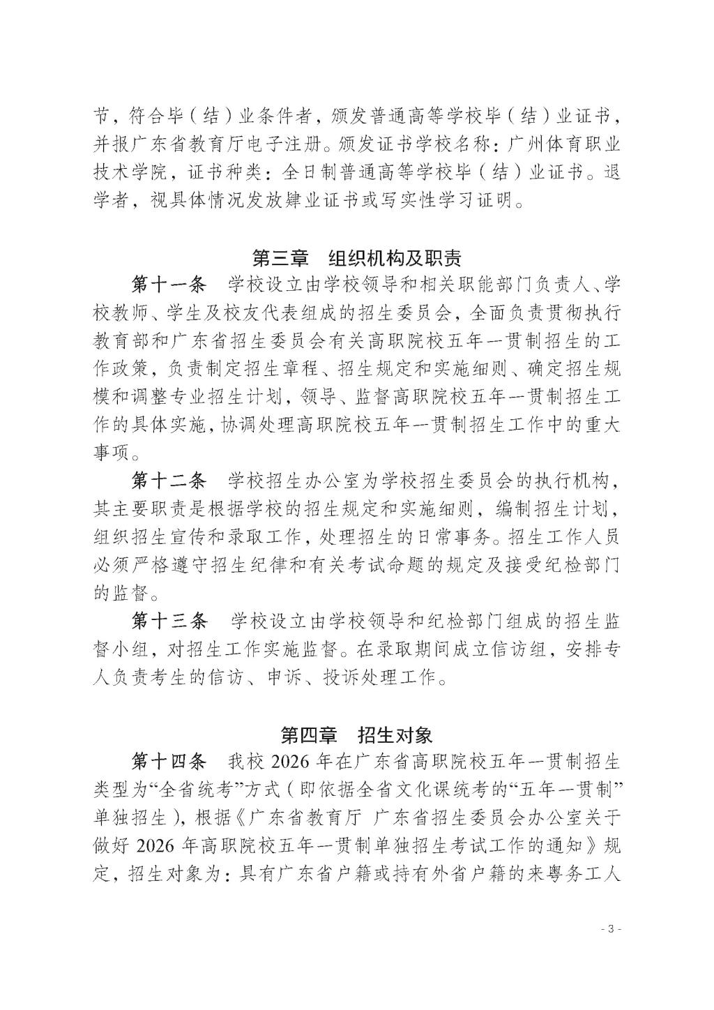 广州体育职业技术学院2026年高职院校五年一贯制招生章程
