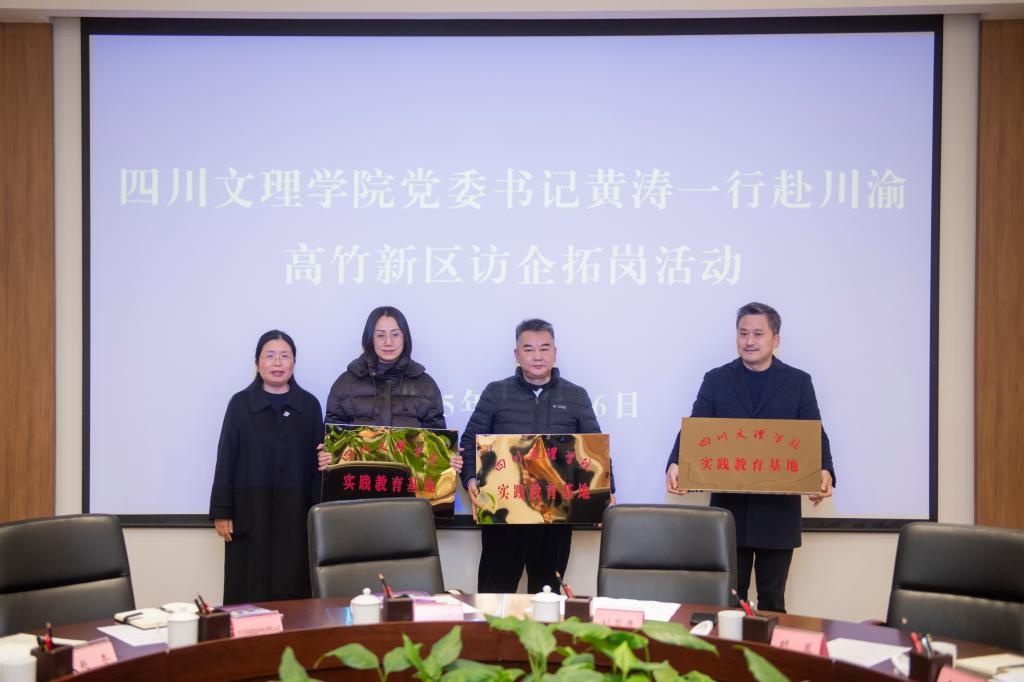 为深入贯彻就业优先和人才强校战略,进一步深化校企合作,拓展就业渠道,提升人才培养质量,12月16日,党委书记黄涛赴川渝高竹新区开展访企拓岗暨博士人才行活动。广安市党组成员、政府副秘书长王喜忠,高竹新区管委会常务副主任赵冬及相关部门负责人、园区重点企业代表热情接待学校一行。副校长程碧英随同调研。