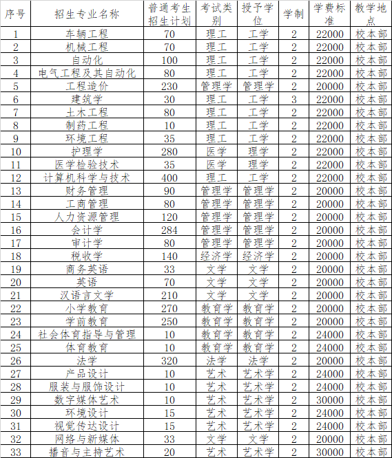 二、 招生专业计划及学费标准