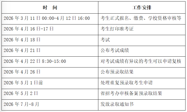 3.考生报名、缴费时间为2026年3月11日8:00至2026年4月12日16:00。