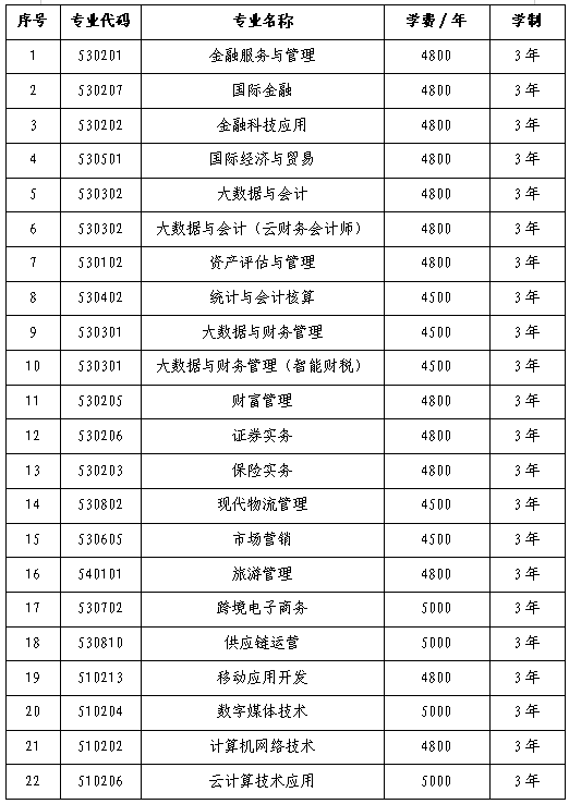 注:1.招生专业、计划以省教育厅审批下达结果为准,学费标准以省物价局审批结果为准。
