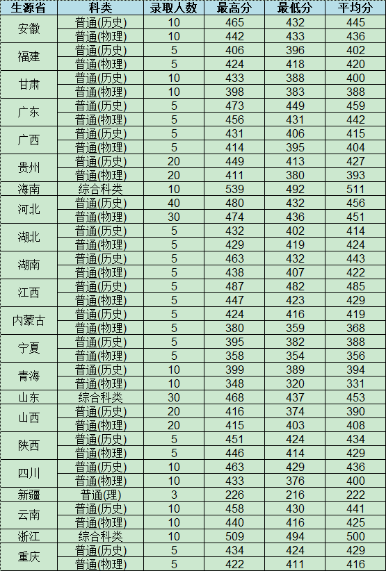 焦作大学2025年省外招生录取情况一览表