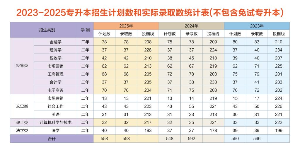2023-2025年浙江财经大学东方学院专升本录取情况(不含免试专升本)