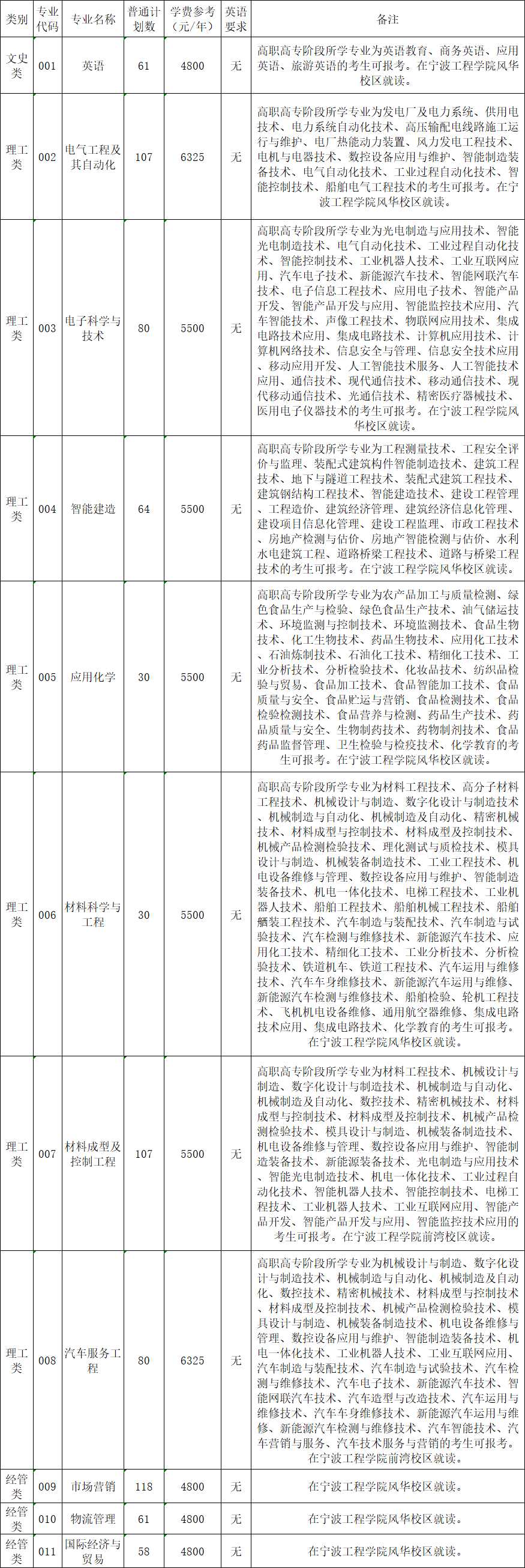 注:具体招生计划数及对应的招生专业范围以浙江省教育考试院公布为准;学费最终以物价部门批准公布为准。