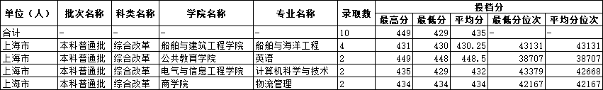 2025年上海市招生专业录取分数情况