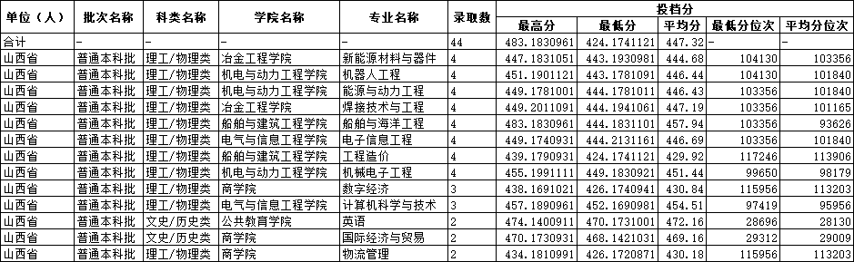 2025年山西省招生专业录取分数情况