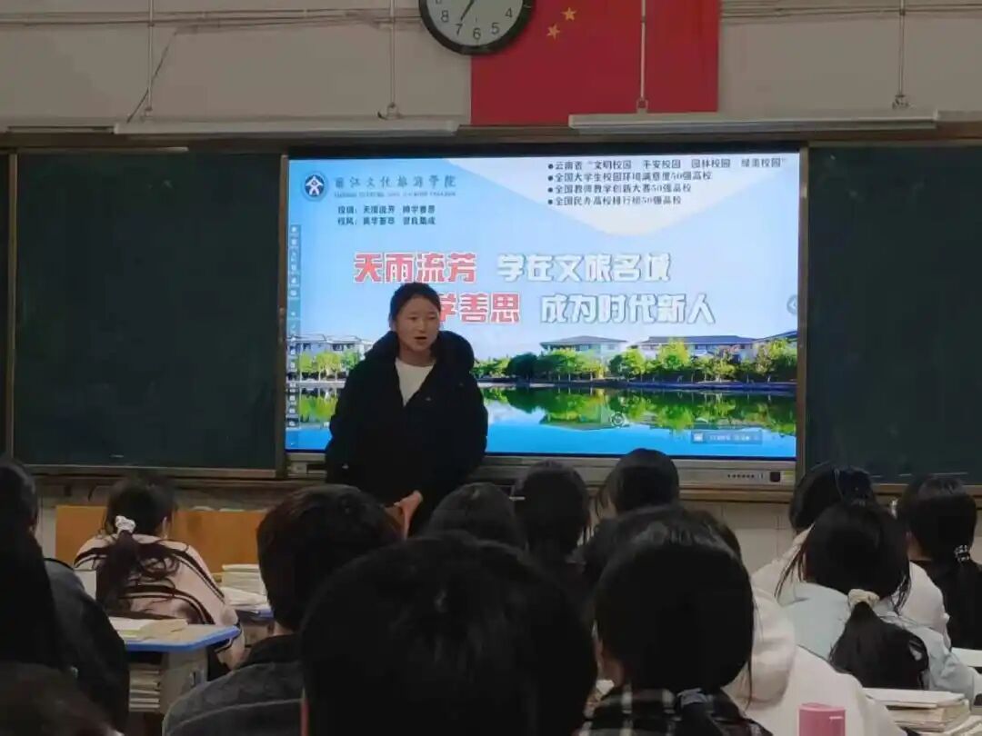 此次返校宣讲活动,是一次青春的传递,更是一场梦想的接力。作为丽江文化旅游学院学子,我以自身经历为桥,为母校高三学子送去经验与力量,展现了当代大学生的责任与担当;同时,也让更多高三学子认识了“雪山下最美大学”,了解了学校的育人理念与特色优势。未来,我将继续秉持感恩之心,传递青春正能量,也祝愿母校高三学子金榜题名、圆梦高考,期待更多优秀学子走进丽江文化旅游学院,在雪山脚下开启精彩大学生活,以青春之我、奋斗之我,书写属于自己的人生华章!